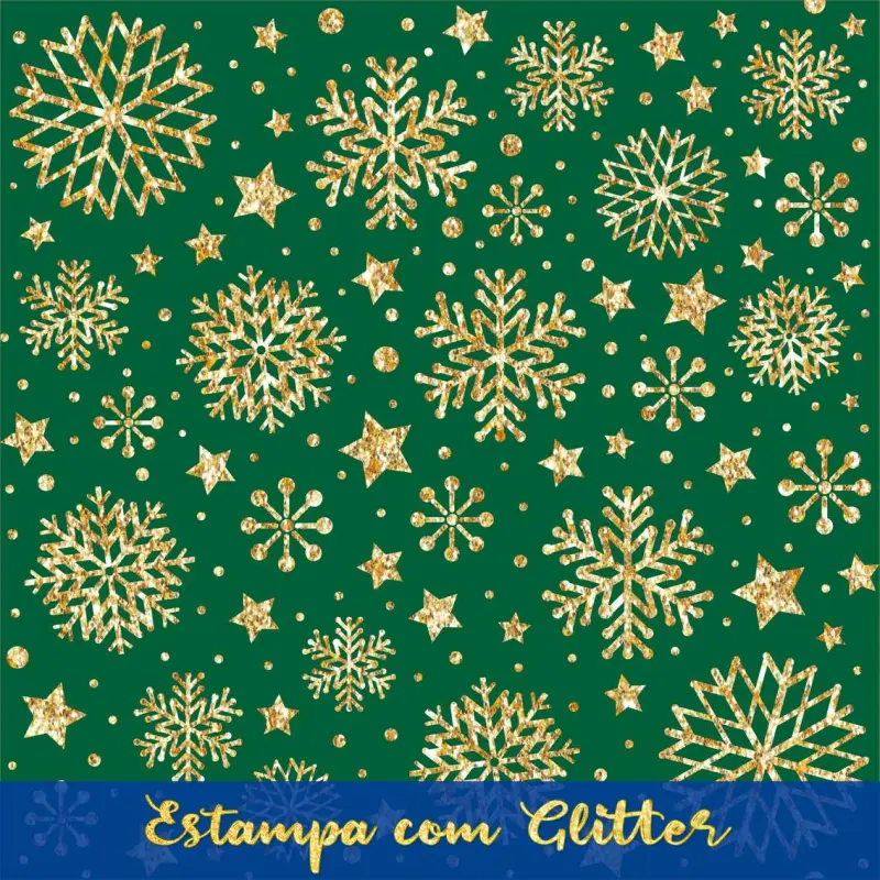 Tecido Tricoline Natal - Estrelas Glitter Dourado - 100% Algodão - 1,50M Largura - Variante 59