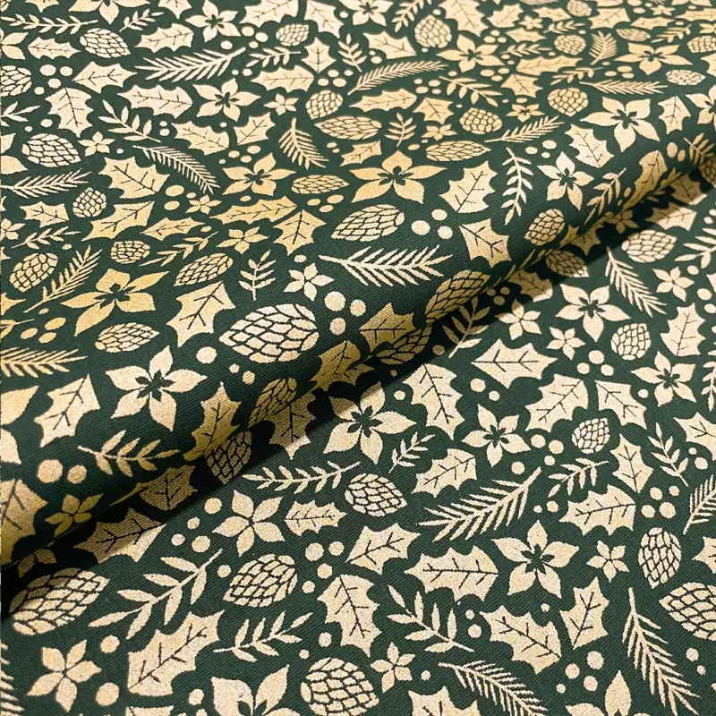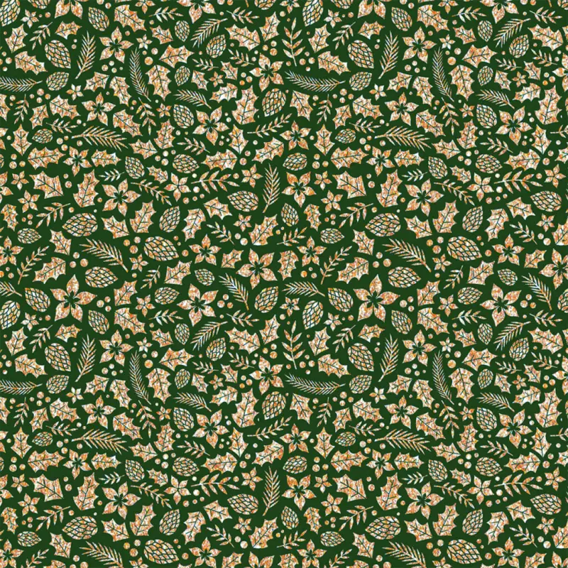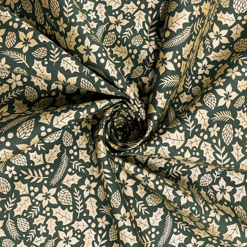 Tecido Tricoline Natal - Folhas Glitter Dourado - 100% Algodão - 1,50M Largura - Variante 59