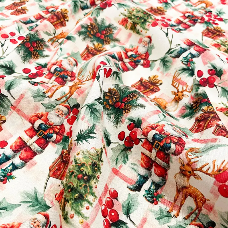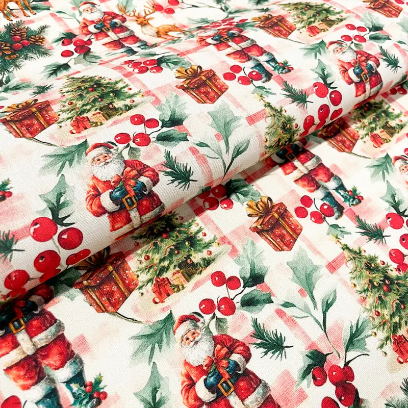 Tricoline Digital Natal Papai Noel E Rena 100% Algodão - Variante 1