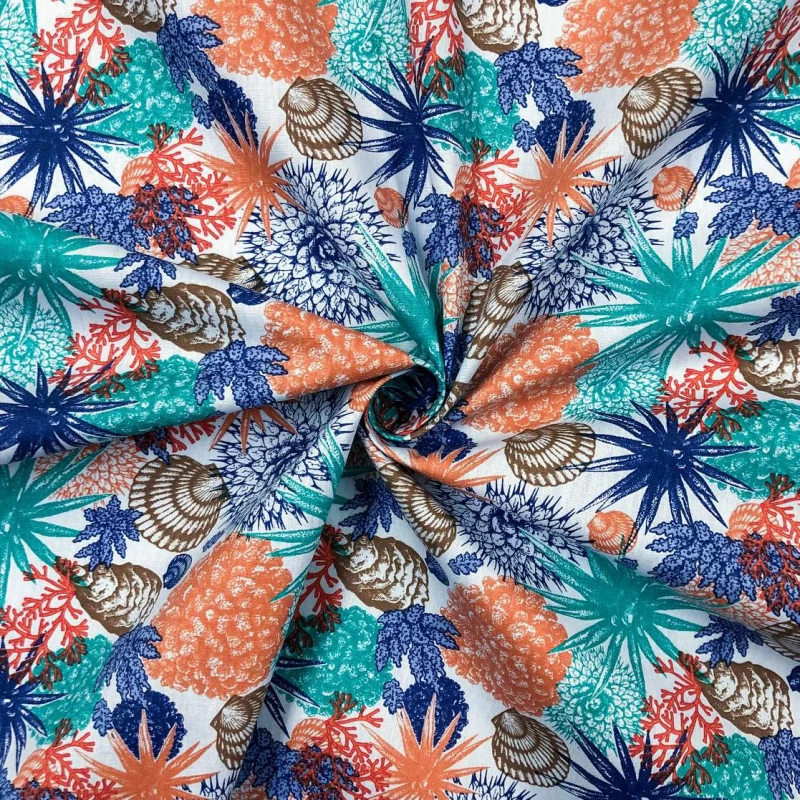 Tecido Tricoline - Fundo Do Mar - 100% Algodão - 1,50M Largura - Variante 2