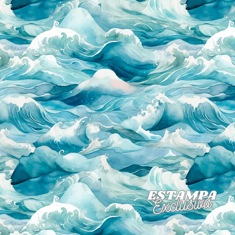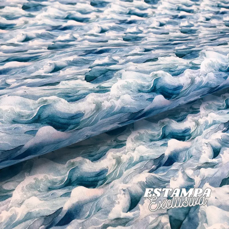 Tricoline Exclusiva Coleção Oceano De Requinte 100% Algodão 1,50M Largura - Ondas