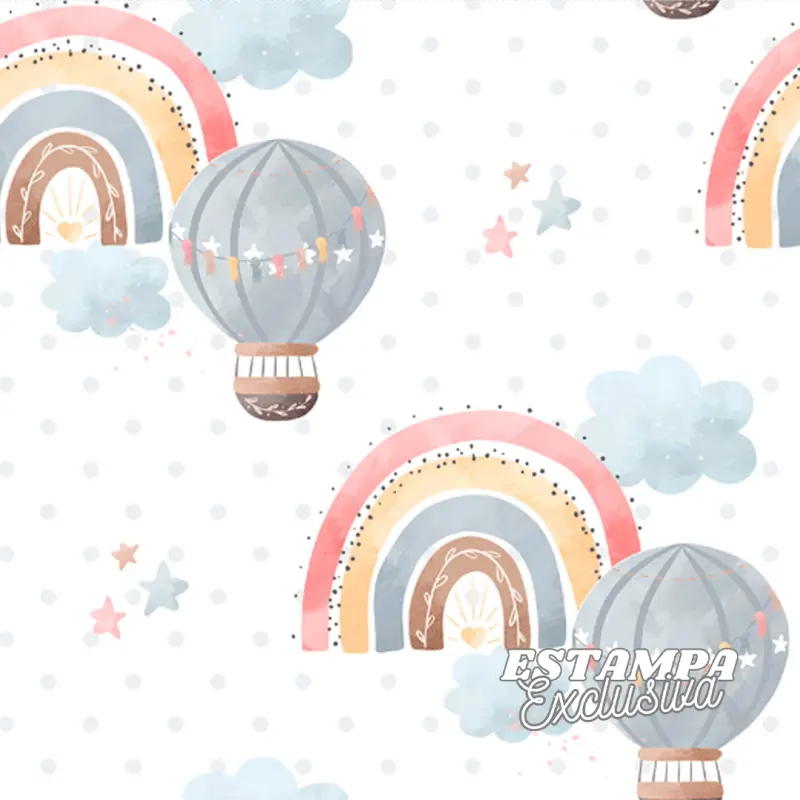 Tricoline Exclusiva Coleção Baby Girl Universo Encantado 100% Algodão 1,50M Largura - Arco Íris Com Balão