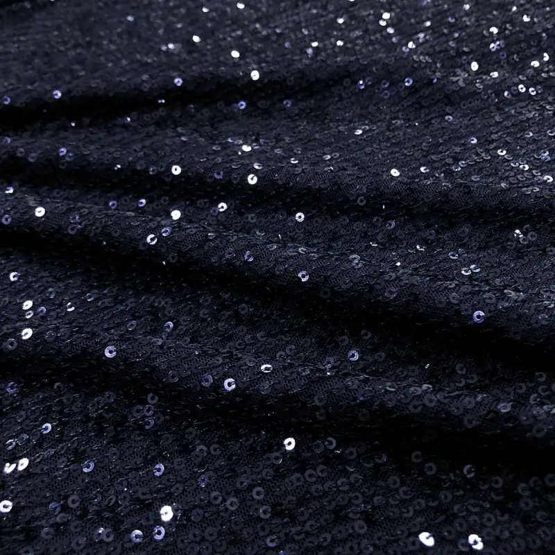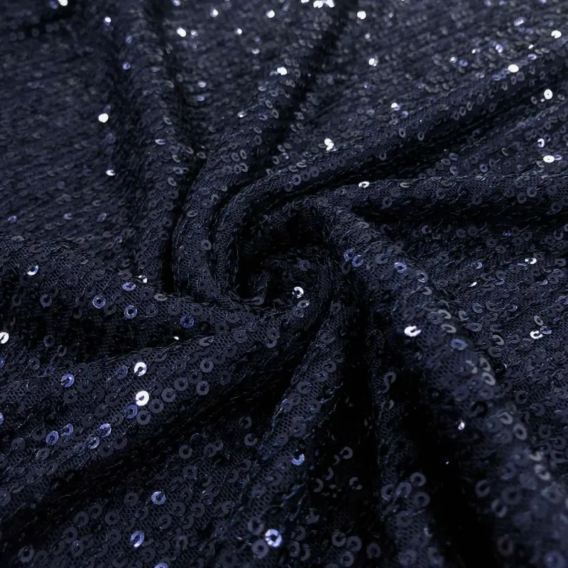 Tecido Paetê Bordado 98% Poliéster 2% Elastano 1,30M Largura - Azul Marinho