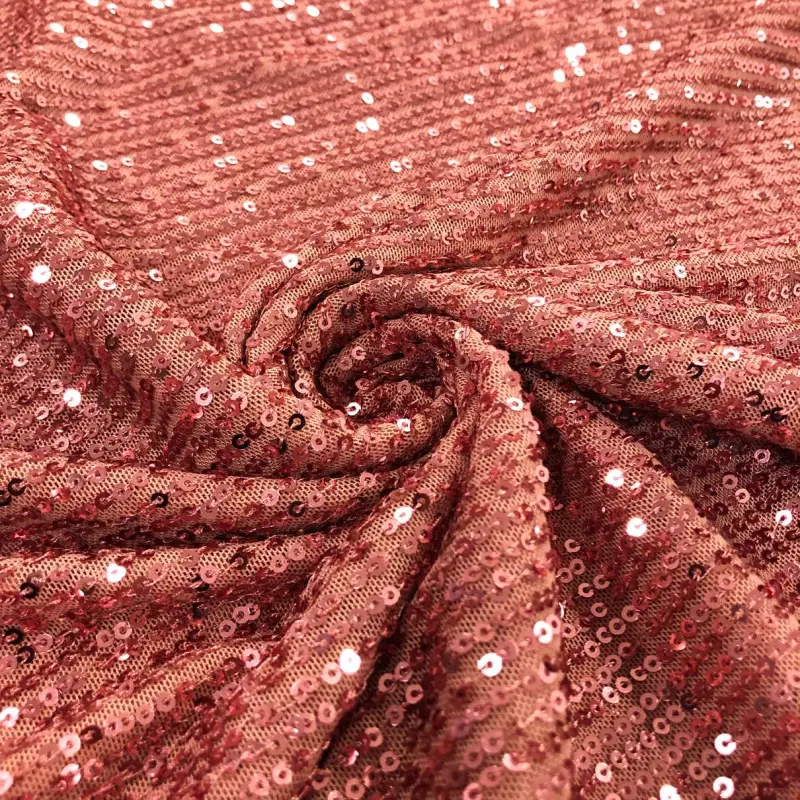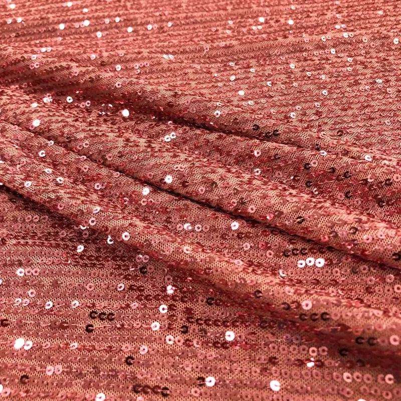 Tecido Paetê Bordado 98% Poliéster 2% Elastano 1,30M Largura - Rosê