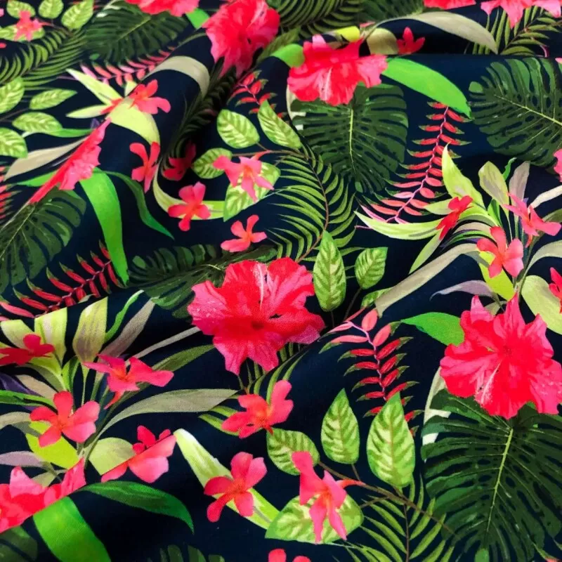 Microfibra Digital (Tactel) Folhagem Tropical 100% Poliéster 1,60M Largura - Variante 1