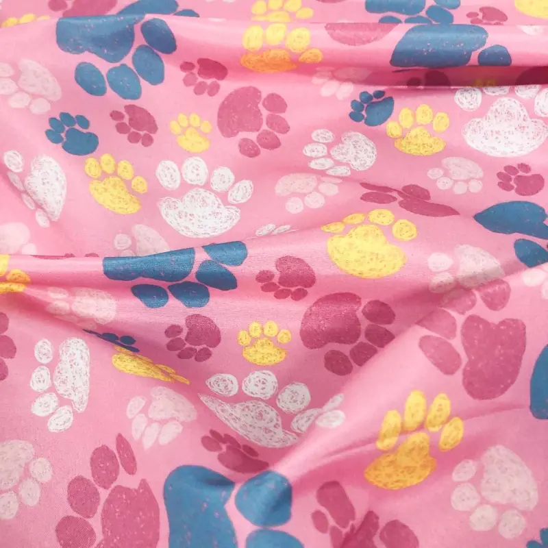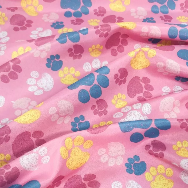 Microfibra Digital (Tactel) Patinhas Rosa 100% Poliéster 1,60M Largura - Variante 1