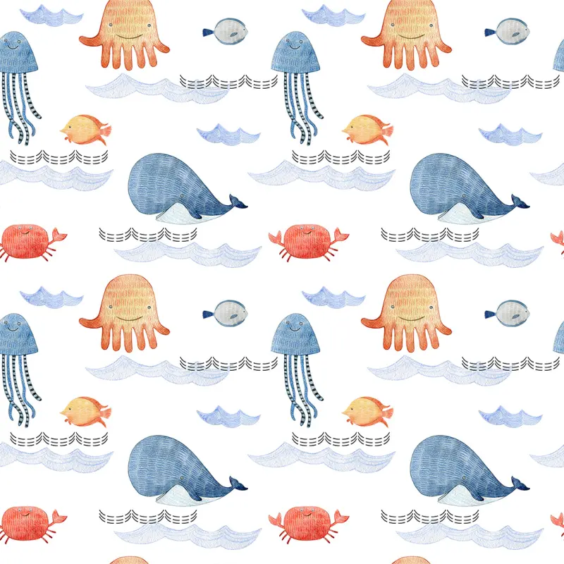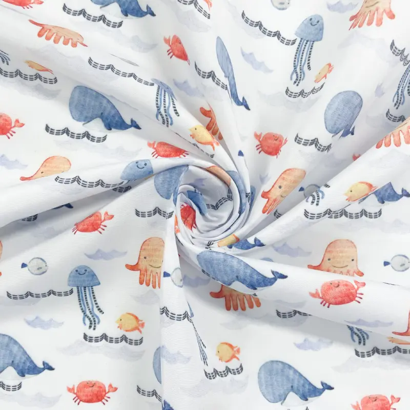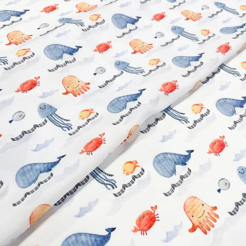 Microfibra Tactel Digital Estampa Exclusiva Coleção Fundo Do Mar 100% Poliéster - Animais