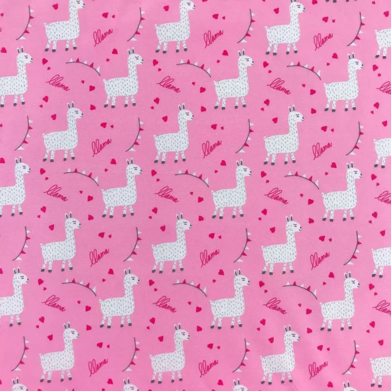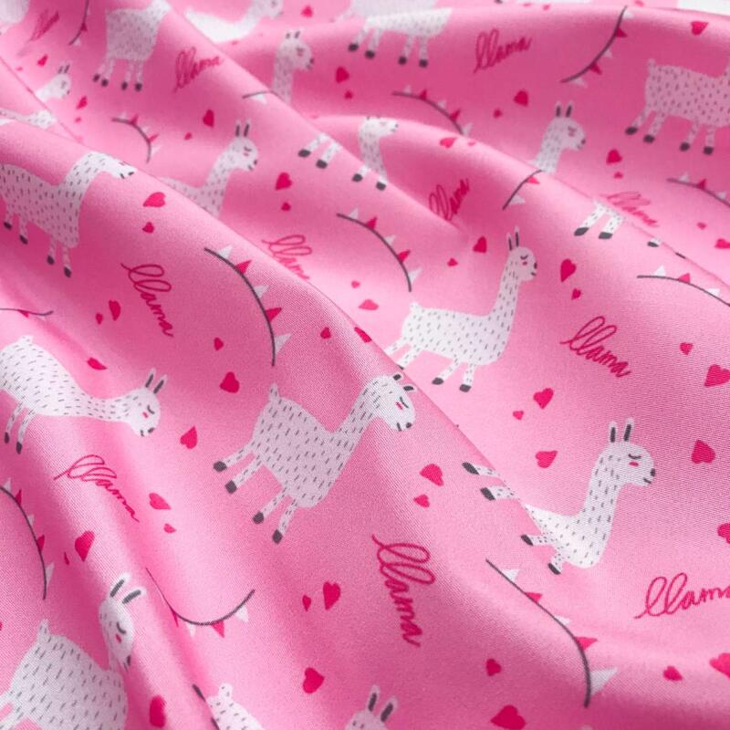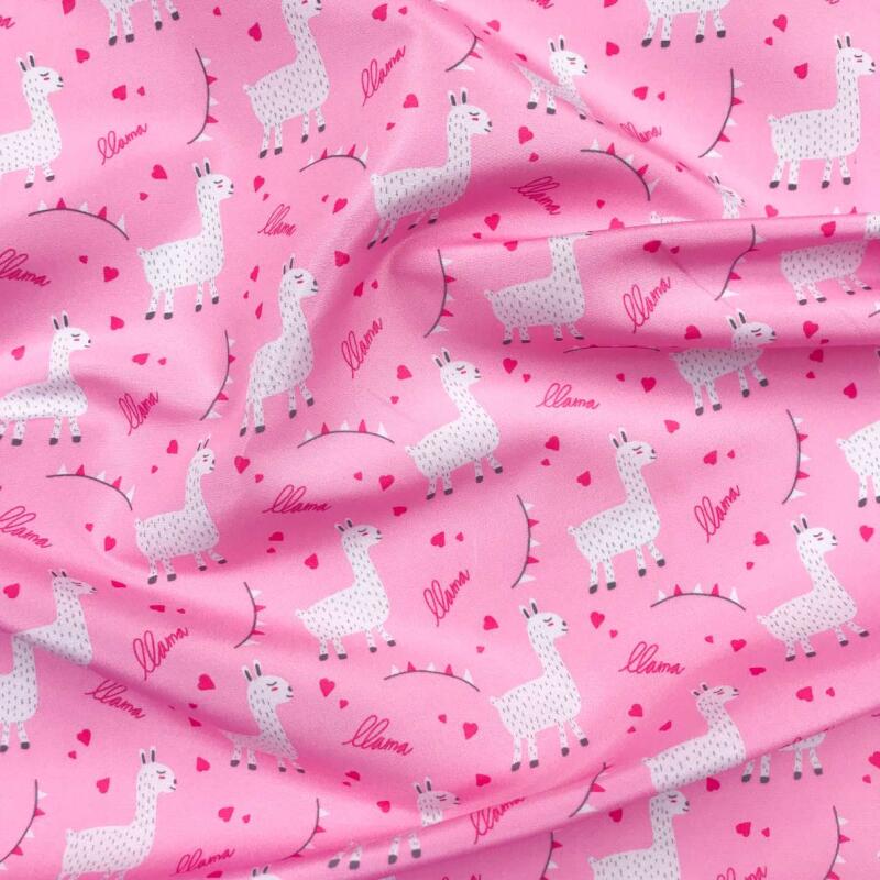 Microfibra Digital (Tactel) - Lhama Fundo Rosa - 100% Poliéster - Variante 1