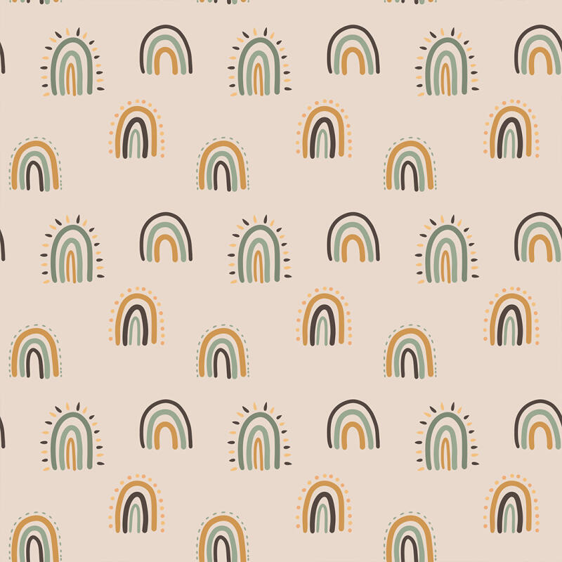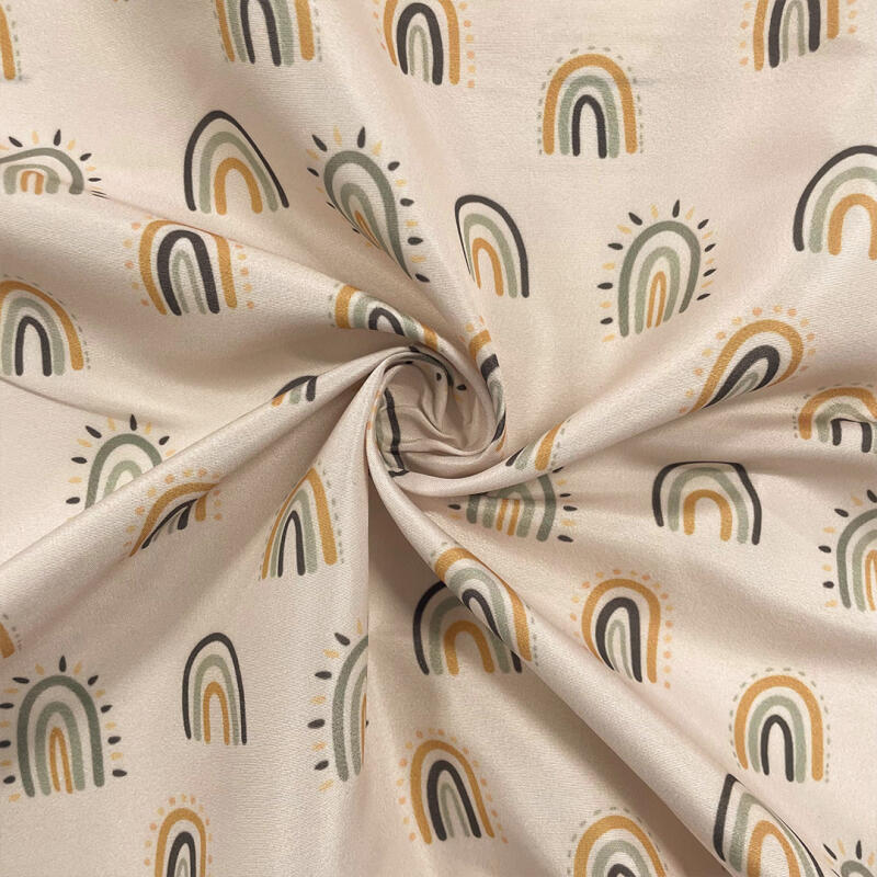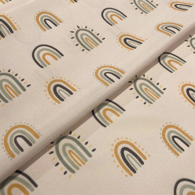 Microfibra Tactel Digital Estampa Exclusiva Arco Iris Boho Fundo Bege 100% Poliéster - Variante 1