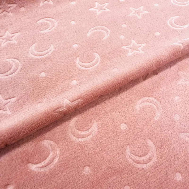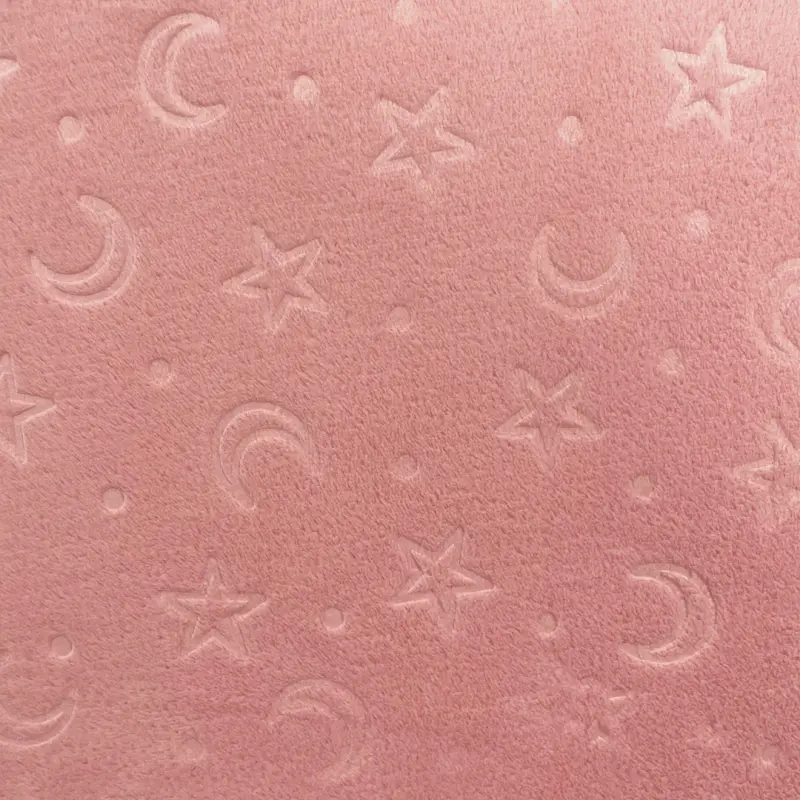 Manta Fleece Calandrada Infantil Lua E Estrela 100% Poliéster 1,60M Largura - Rosê