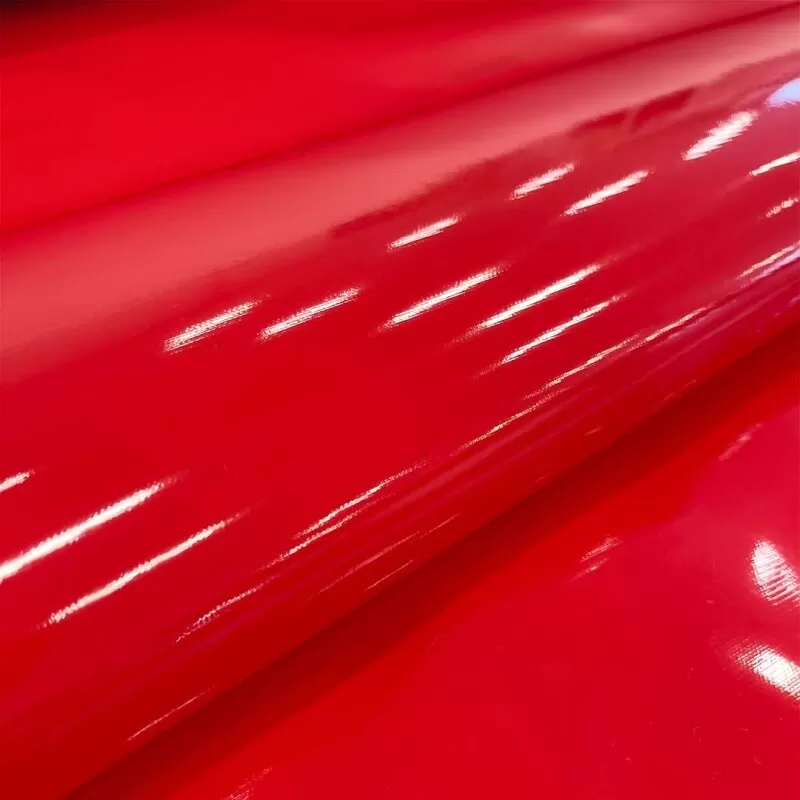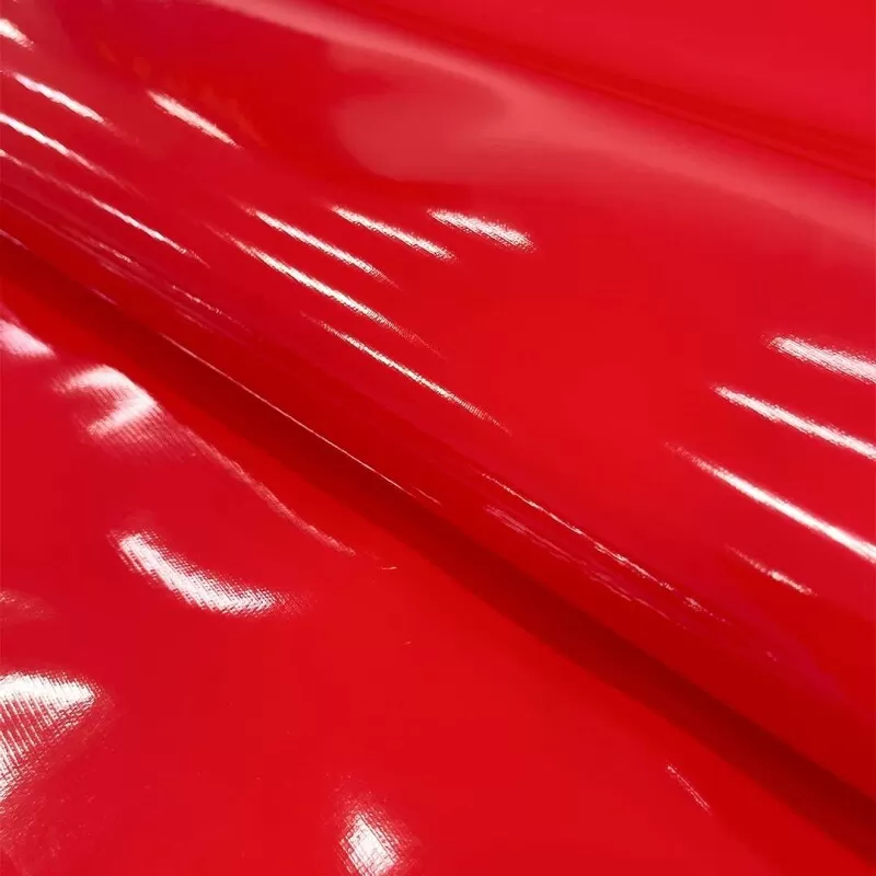 Sintético Verniz Espessura 0.35Mm Fundo Malha De Poliéster 1,40M Largura - Vermelho