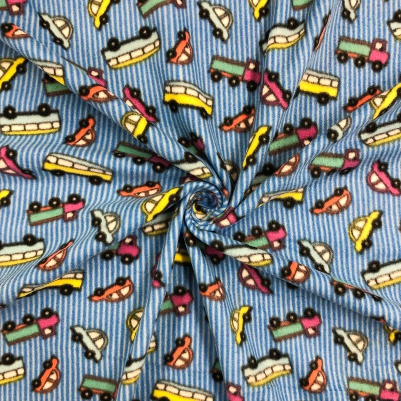 Soft Estampado - Carrinhos Bibip Fundo Azul - 100% Poliéster - 1,60M Largura - Variante 1