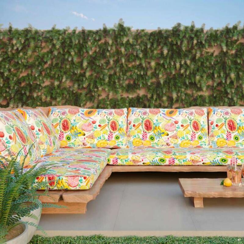 O tecido ACQUABLOCK® IMPERMEÁVEL KARSTEN é feito especialmente para estofados de área externa, como sofás e almofadas beira-mar ou piscina, pois possuem revestimentos que protegem todo tecido contra vários fatores, como: