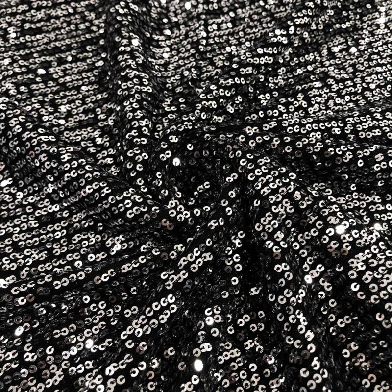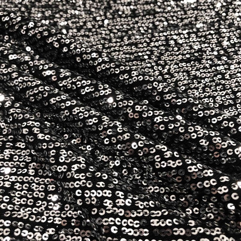 Tecido Paetê Bordado 98% Poliéster 2% Elastano 1,30M Largura - (F)Preto(B)Prata