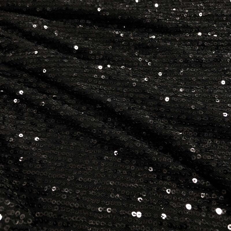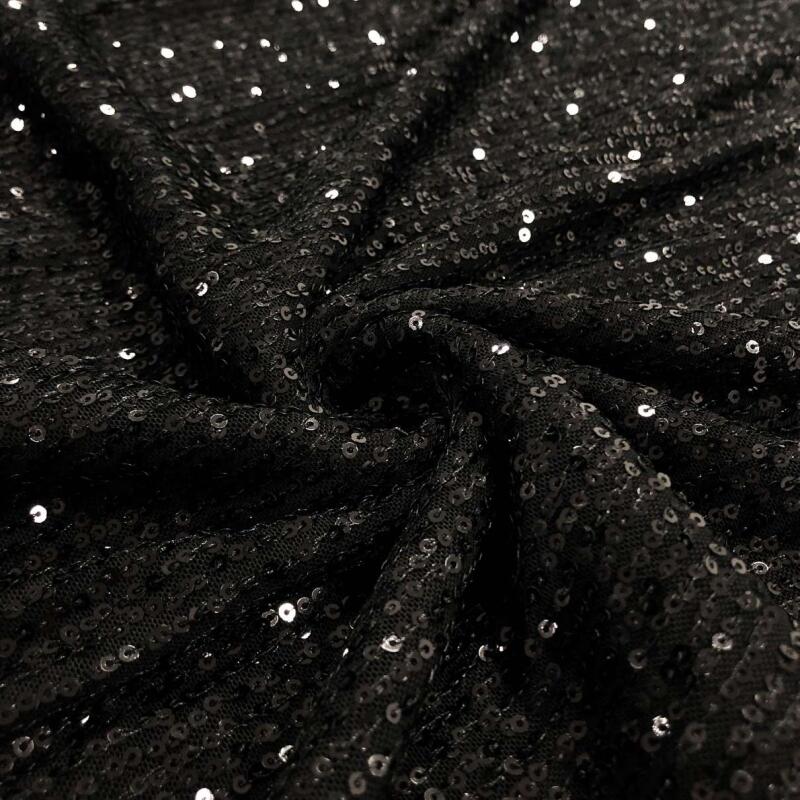 Tecido Paetê Bordado 98% Poliéster 2% Elastano 1,30M Largura - Preto