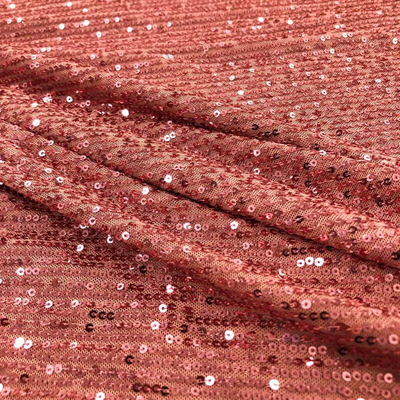 Tecido Paetê Bordado 98% Poliéster 2% Elastano 1,30M Largura - Rosê