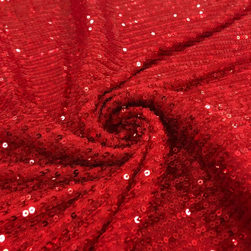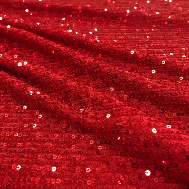 Tecido Paetê Bordado 98% Poliéster 2% Elastano 1,30M Largura - Vermelho