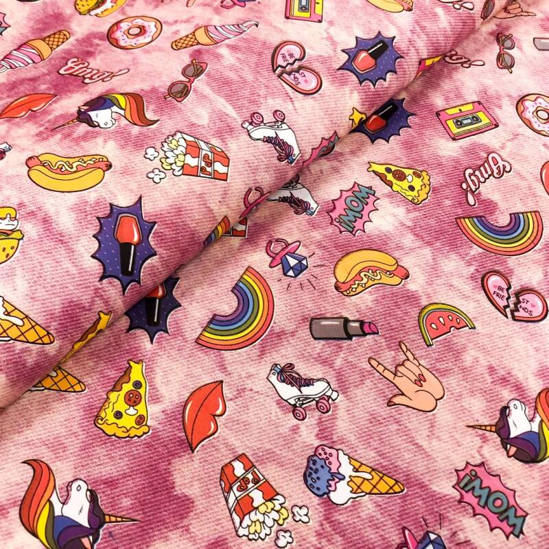 Tecido Sintético Pvc Estampado Sticker Rosa 100% Poliéster 1,40M Largura - Variante 1