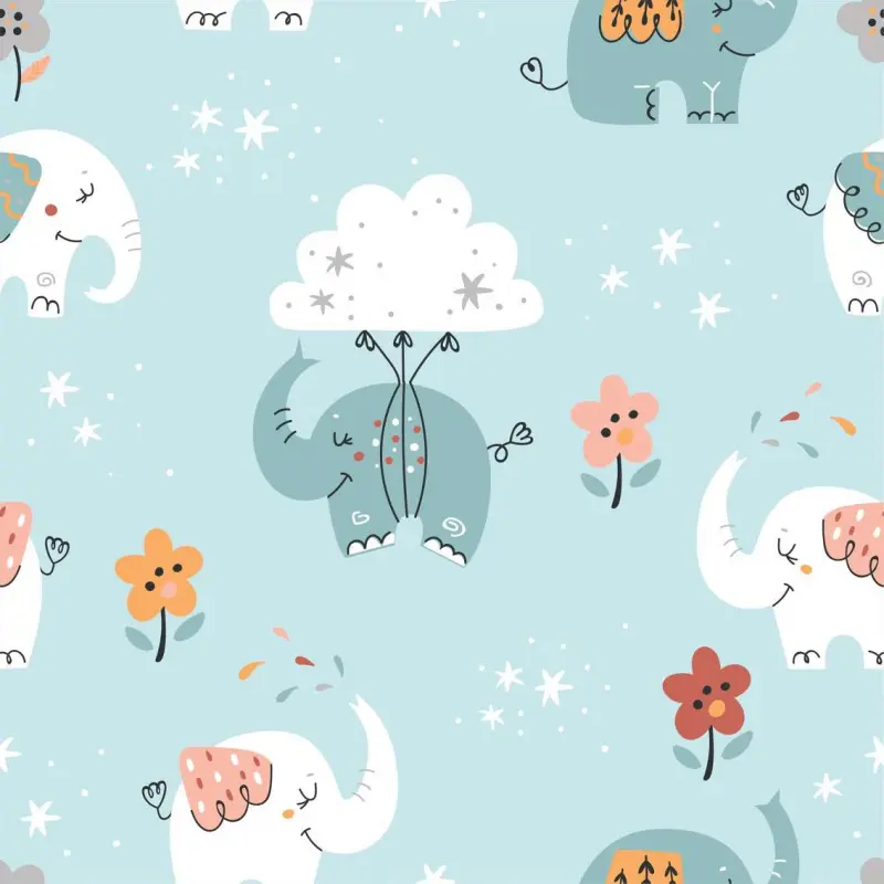 Tecido Tricoline - Elefantinhos Nuvens - 100% Algodão - 1,50M Largura - Variante 1