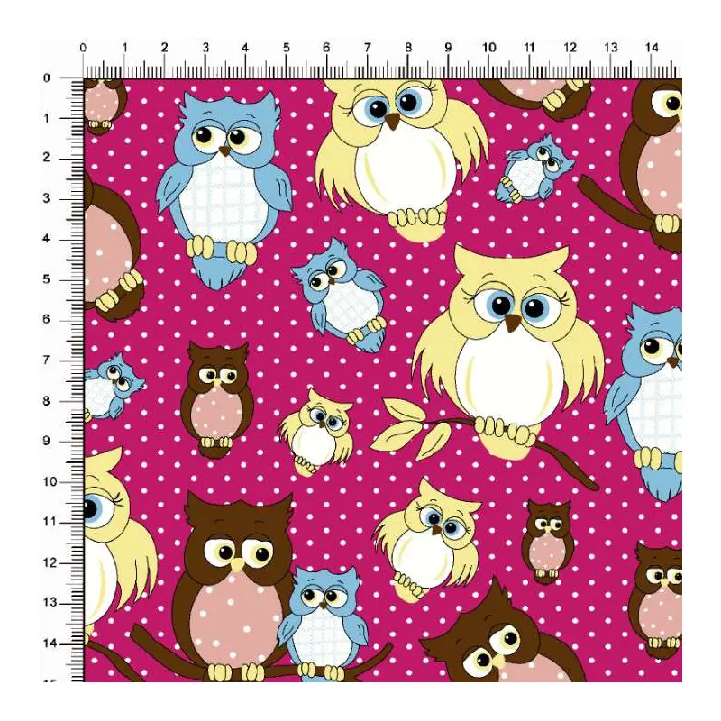 Tecido Tricoline Estampado - Coruja Com Poá - 100% Algodão - 1,50M Largura - Variante 5