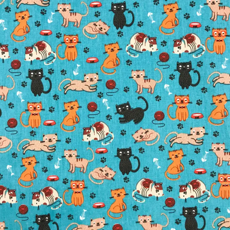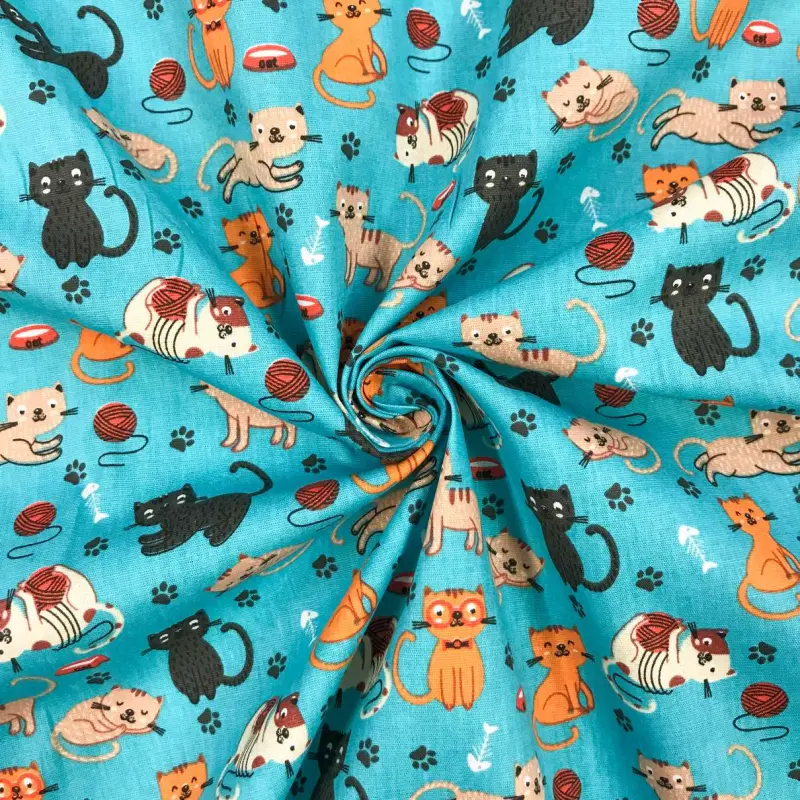 Tecido Tricoline - Gatinhos Brincando - 100% Algodão - Variante 1