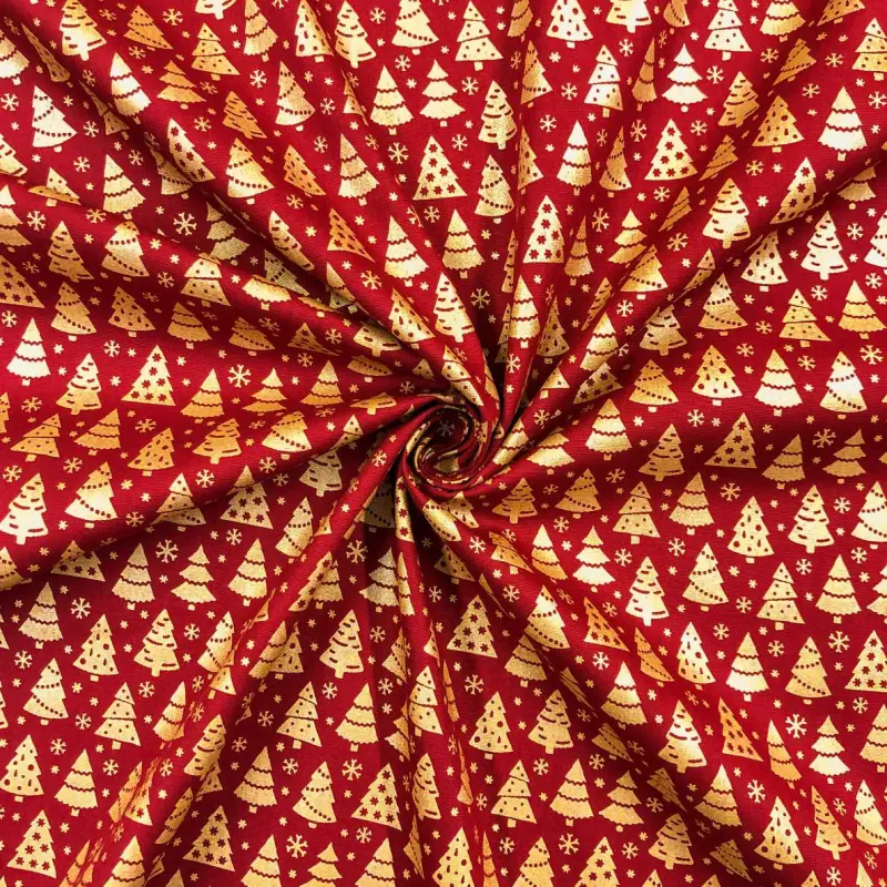 Tecido Tricoline Natal - Pinheiro Glitter Dourado - 100% Algodão - 1,50M Largura - Variante 58