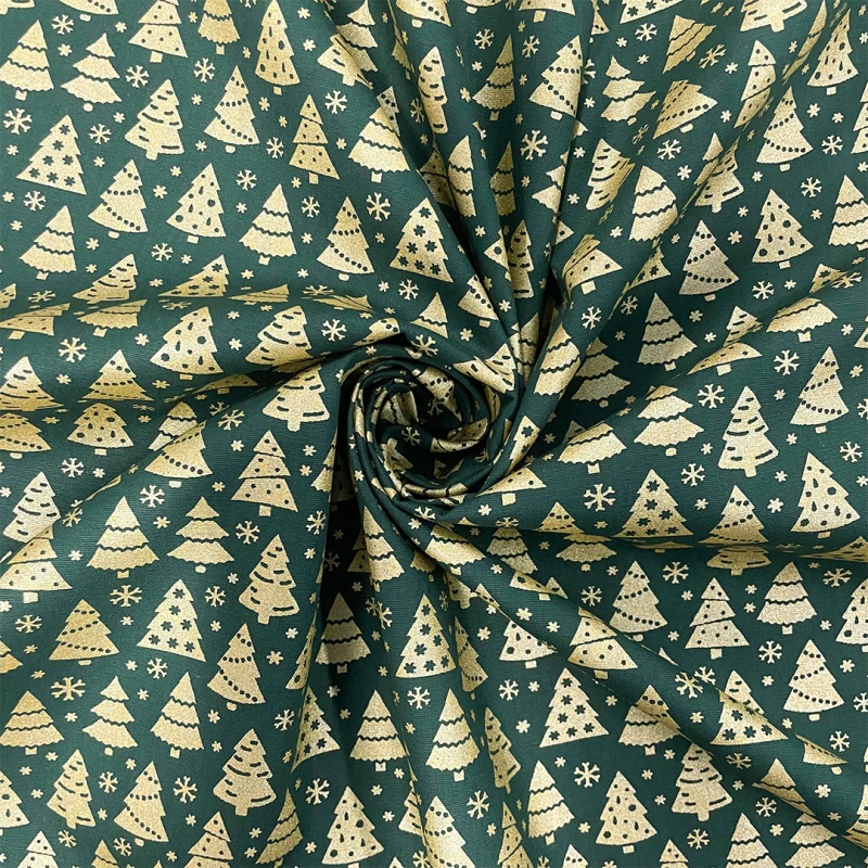 Tecido Tricoline Natal - Pinheiro Glitter Dourado - 100% Algodão - 1,50M Largura - Variante 59