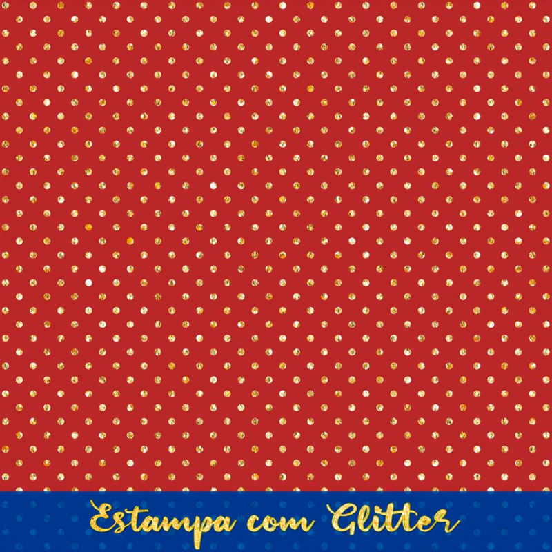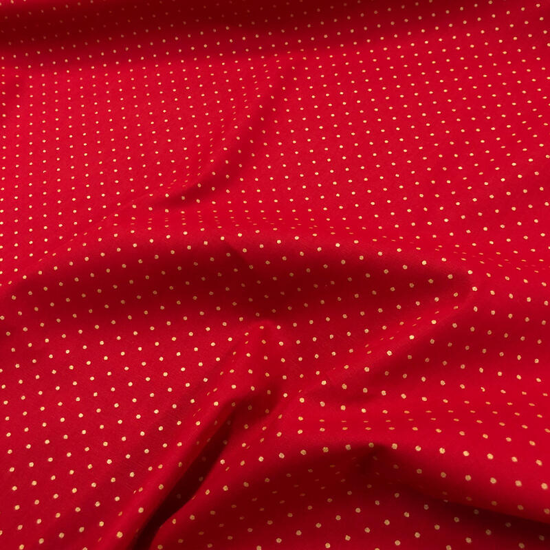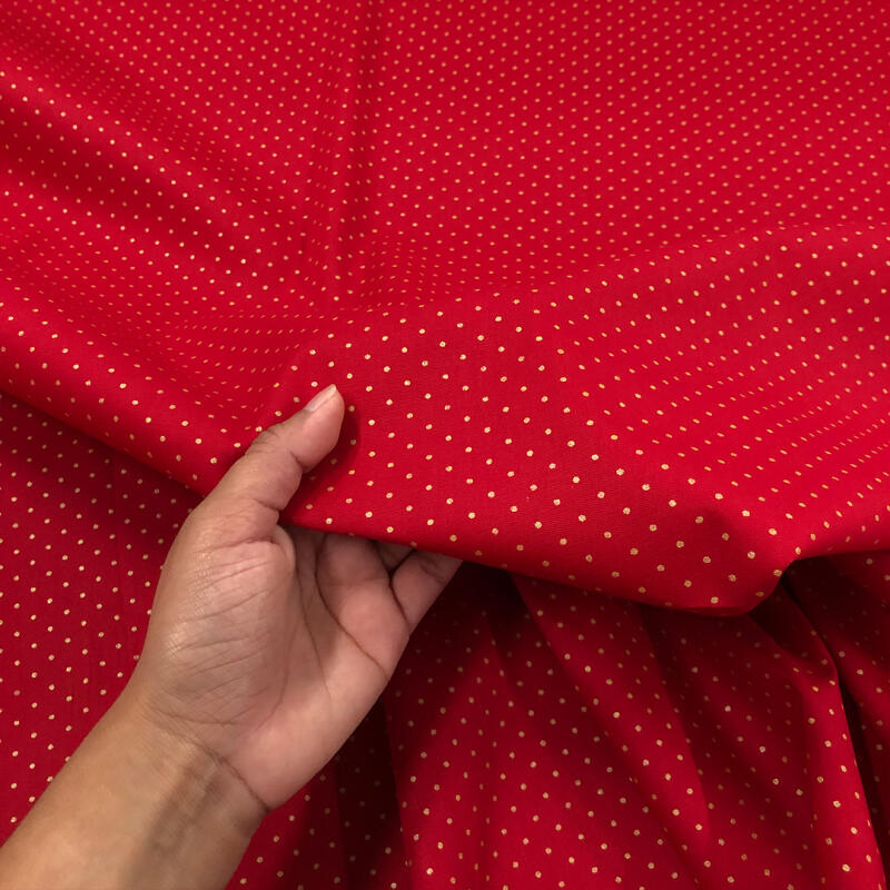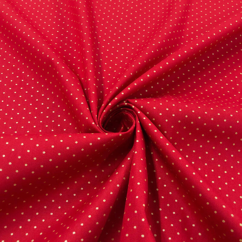 Tecido Tricoline Natal Poá Com Glitter Dourado 100% Algodão 1,50M Largura - Vermelho Natal