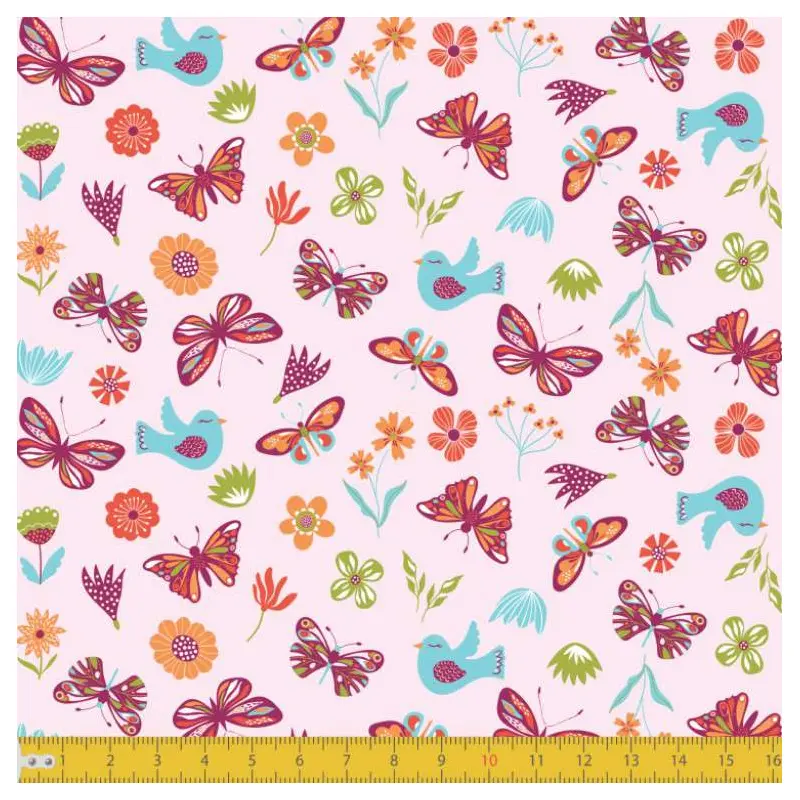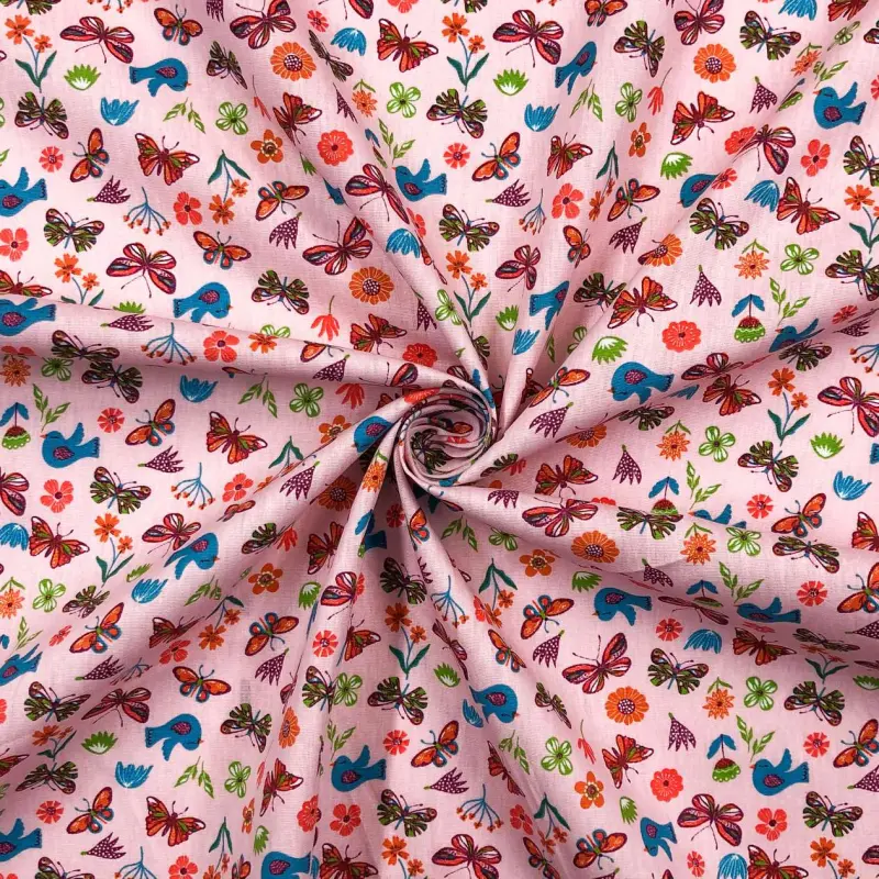 Tecido Tricoline - Pássaros E Borboletas - 100% Algodão - 1,50M Largura - Variante 2