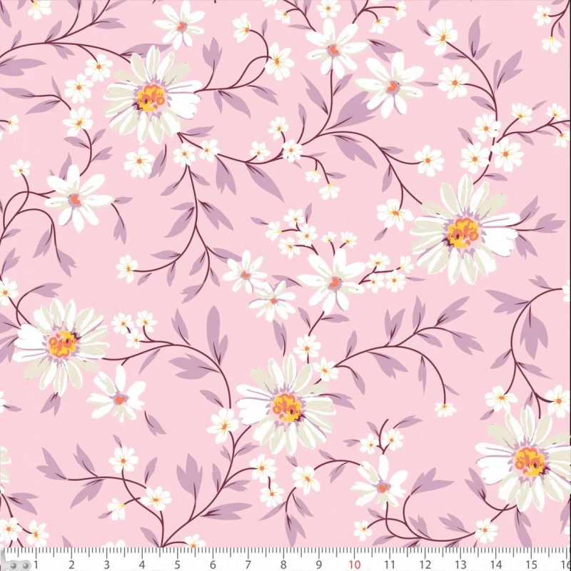 Tecido Tricoline - Ramos Margaridas - 100% Algodão - 1,50M Largura - Variante 2