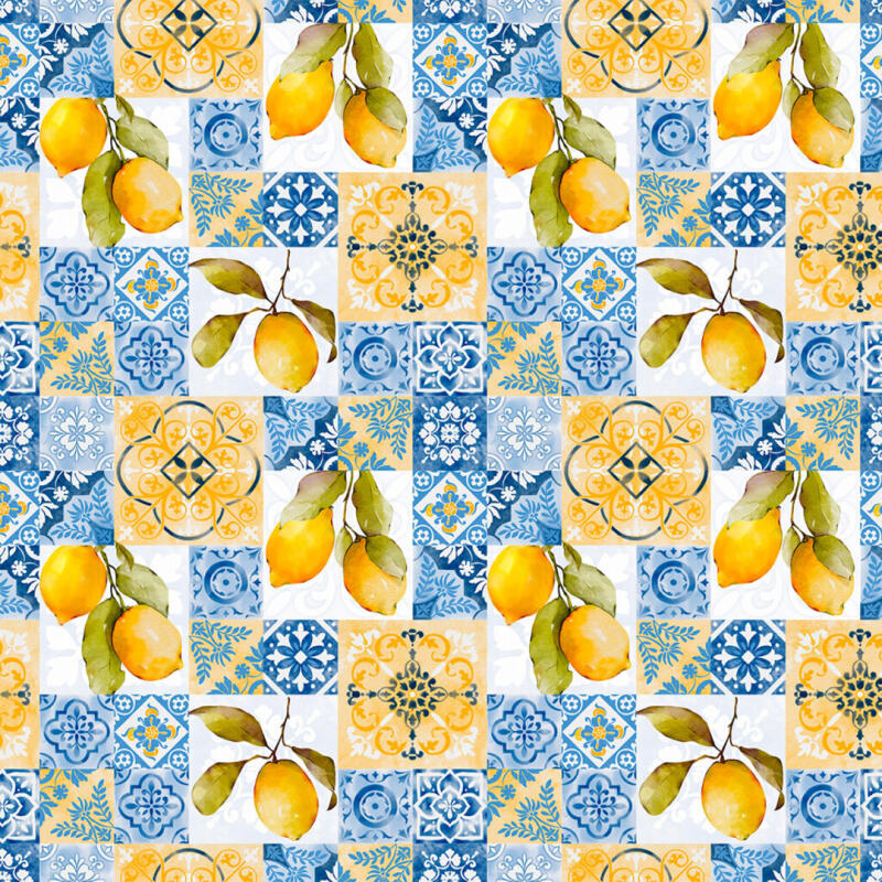 Tricoline Estampada Azulejo Português Com Limão Siciliano 100% Algodão 1,50M Largura - Variante 1