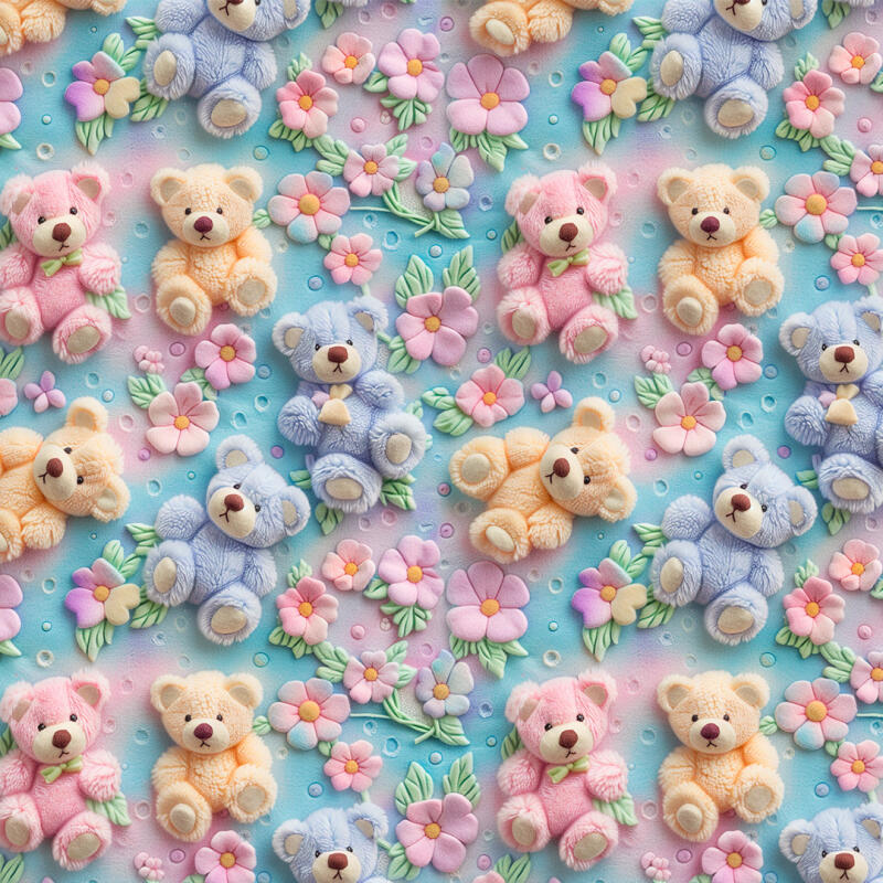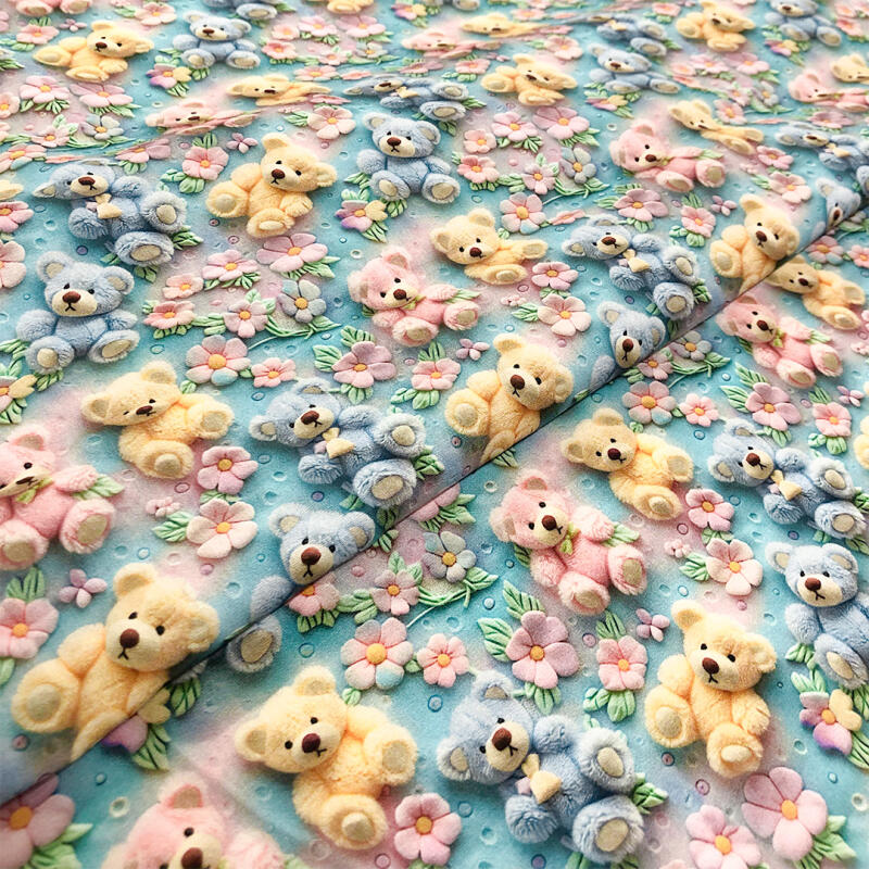 Tricoline Fabricart Digital 3D Ursos E Flores 100% Algodão 1,50M Largura - Variante 1