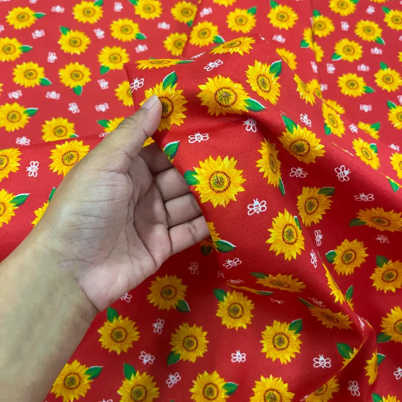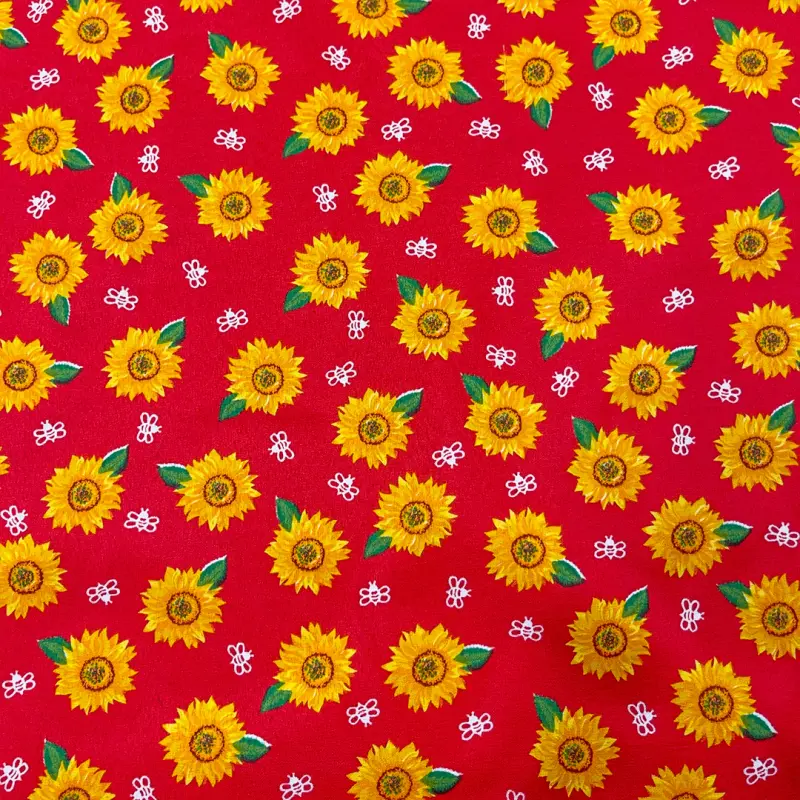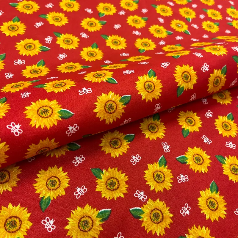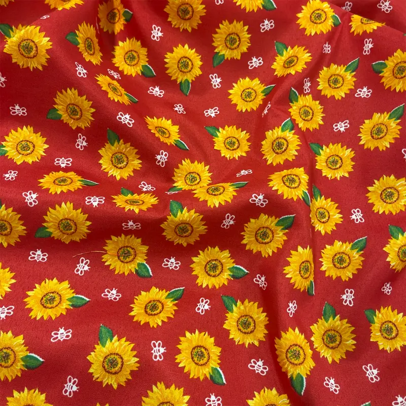 Textoleen Estampado Girassol 100% Poliester 1,50M Largura - Vermelho