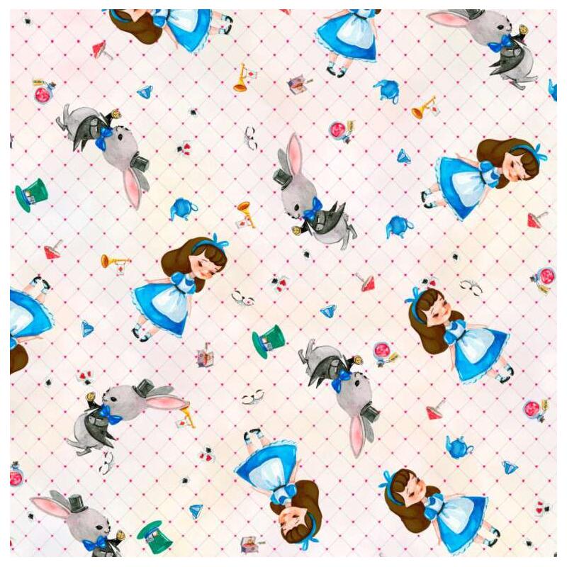 Tricoline Digital - Aline No País Das Maravilhas - 100% Algodão - Variante 1