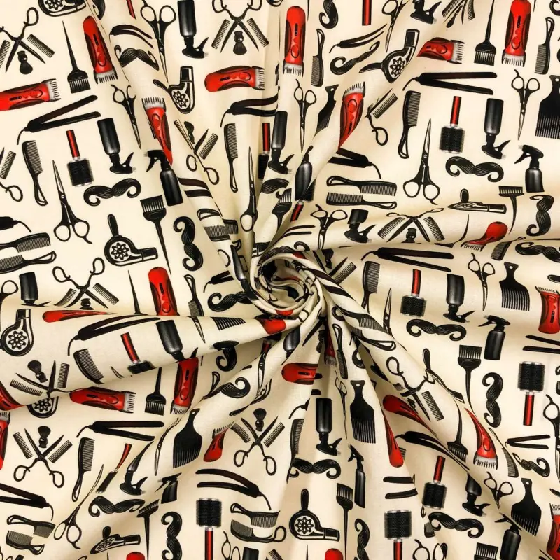 Tricoline Digital - Barber Shop - 100% Algodão - Variante 1
