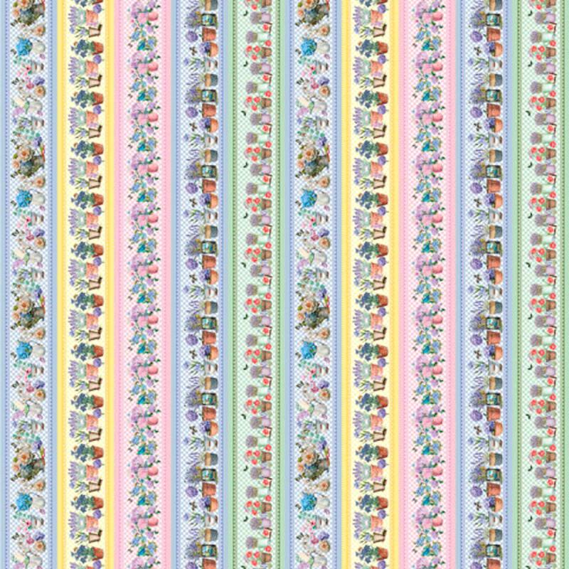 Tricoline Digital Barrado Vaso De Flores 100% Algodão 1,50M Largura - Variante 1