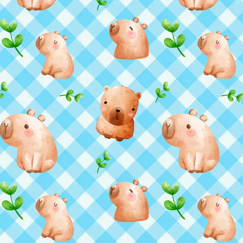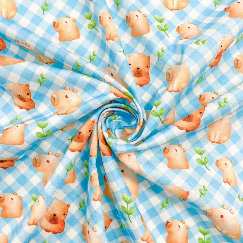 Tricoline Digital Fabricart Coleção Capivaras 100% Algodão 1,50M Largura - Capivara Azul