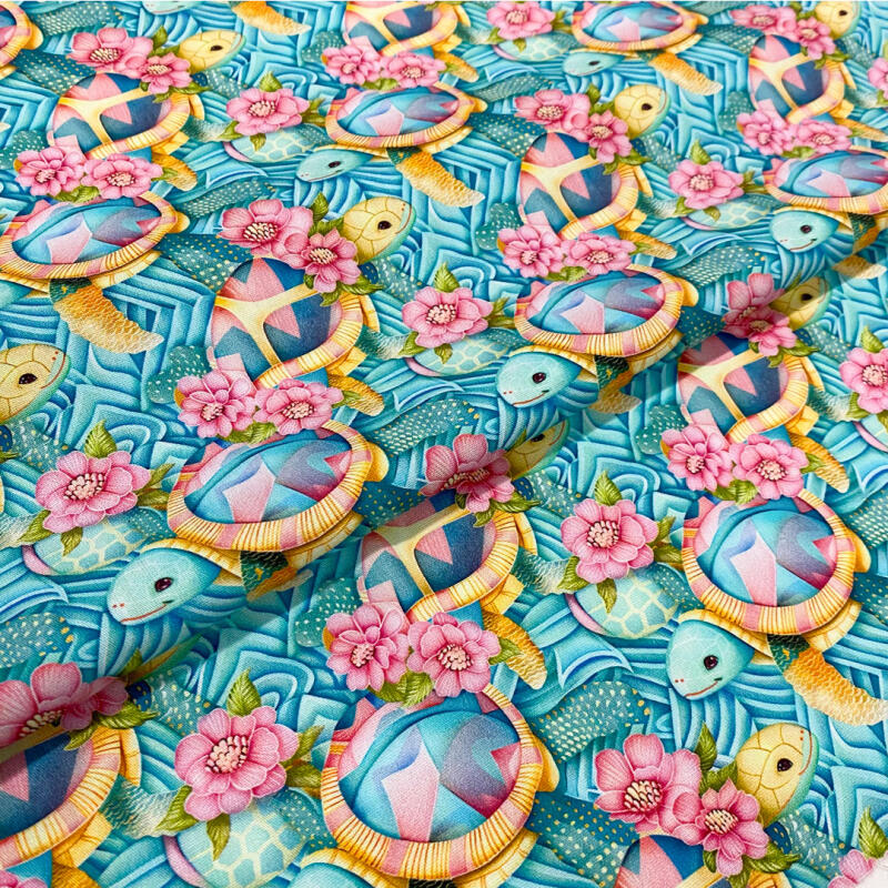 Tricoline Digital Fabricart Coleção Tropical 100% Algodão 1,50M Largura - Tartarugas