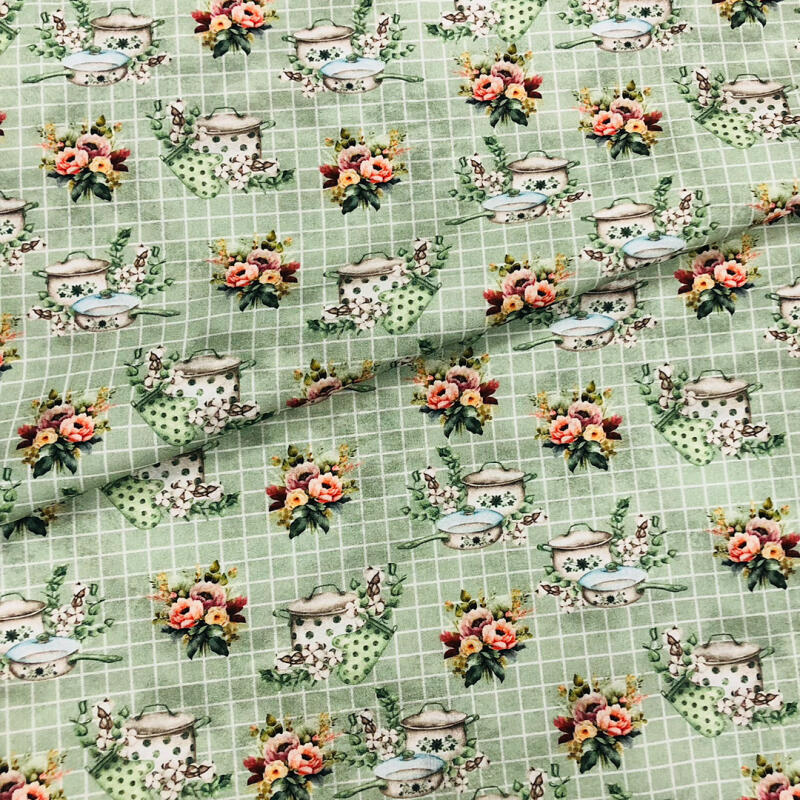 Tricoline Digital Fabricart Panelas E Luvas Verde 100% Algodão 1,50M Largura - Variante 1