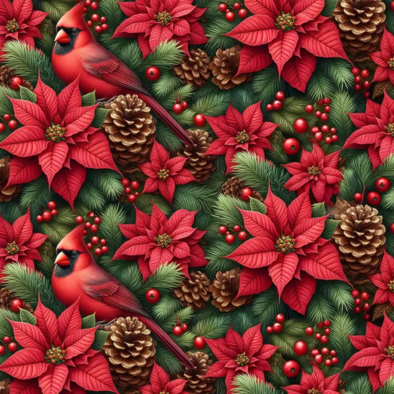 Tricoline Digital Fernando Maluhy Natal Pássaro Com Pinhas 100% Algodão - C01