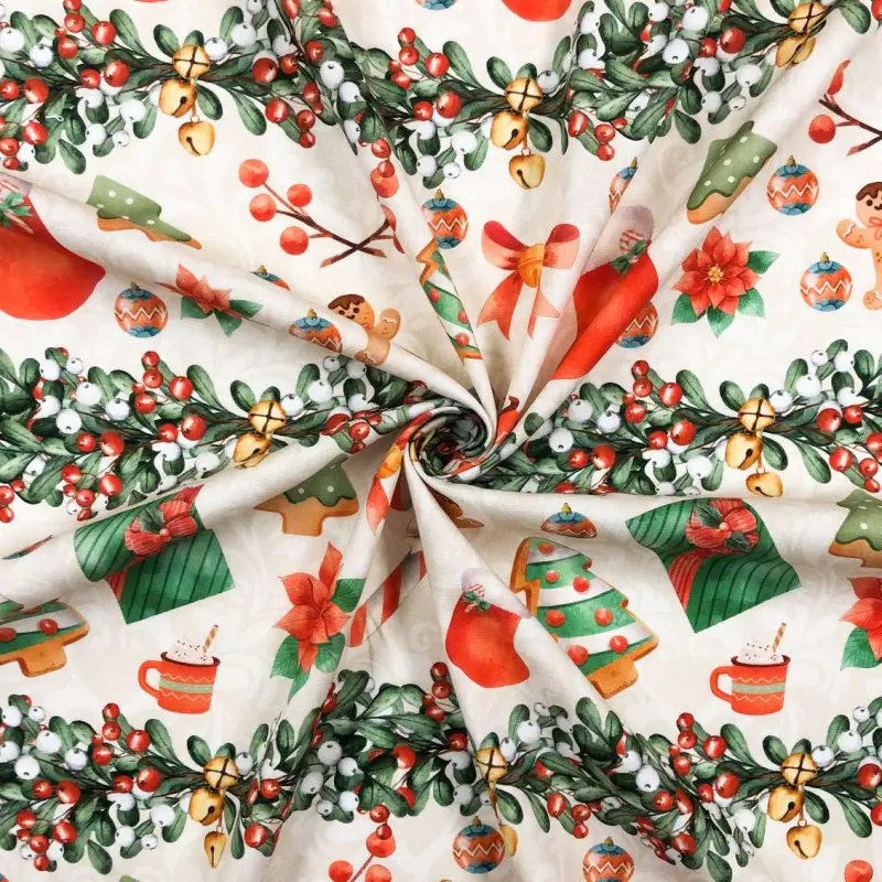 Tricoline Digital - Itens De Natal Fundo Bege - 100% Algodão - Variante 1