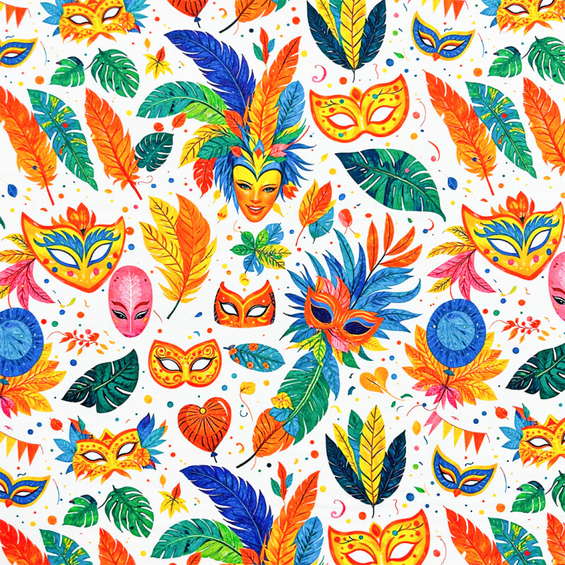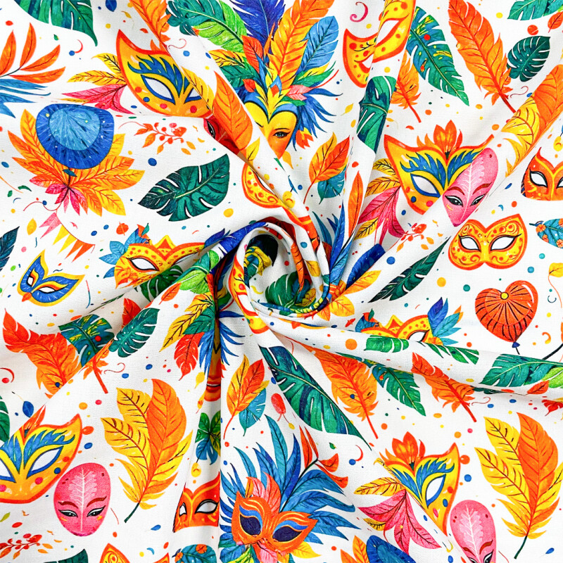 Tricoline Digital Máscaras De Carnaval 100% Algodão - Variante 1