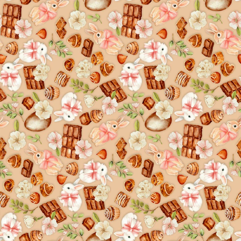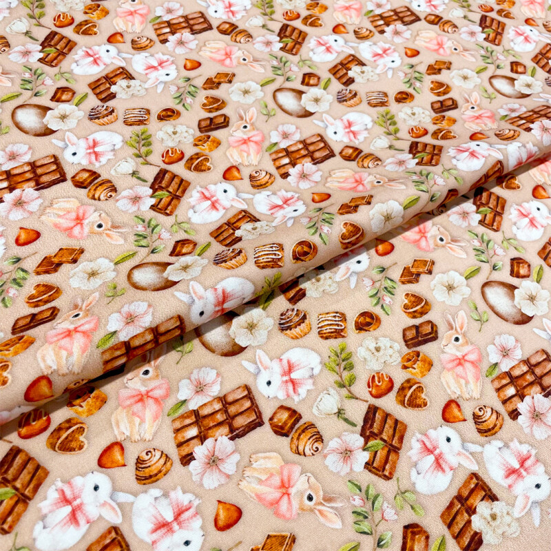 Tricoline Digital Páscoa Bunny Chocolate 1,50 Largura 100% Algodão - Variante 1