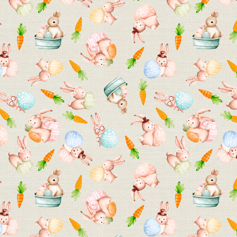 Tricoline Digital Páscoa Coelhinho Com Cenoura 100% Algodão 1,50M Largura - Variante 1