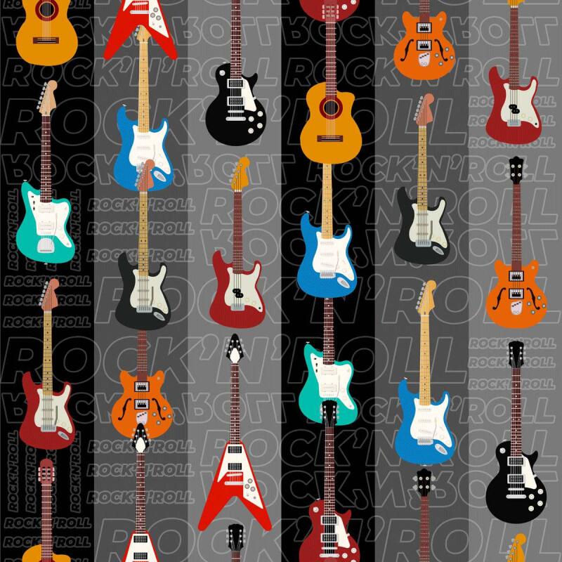 Tricoline Digital Rock 'N Roll Guitarras 100% Algodão 1,50M Largura - Variante 1