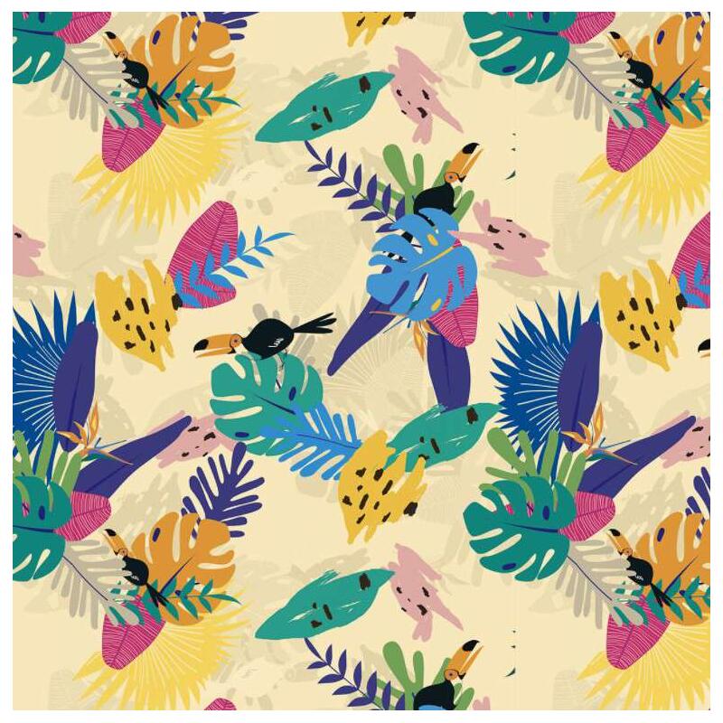 Tricoline Digital - Tucanos E Folhagens - 100% Algodão - Variante 1