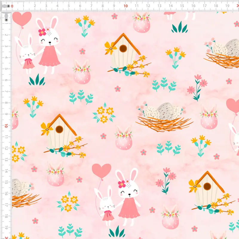 Tricoline Páscoa Coelho Bunny 100% Algodão 1,50M Largura - Variante 1