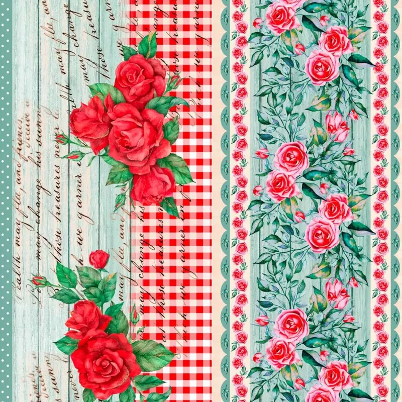 Painel Tricoline Digital Barrado Cris Poletto Rosas 0,55 X 1,50M 10 Faixas - Variante 1