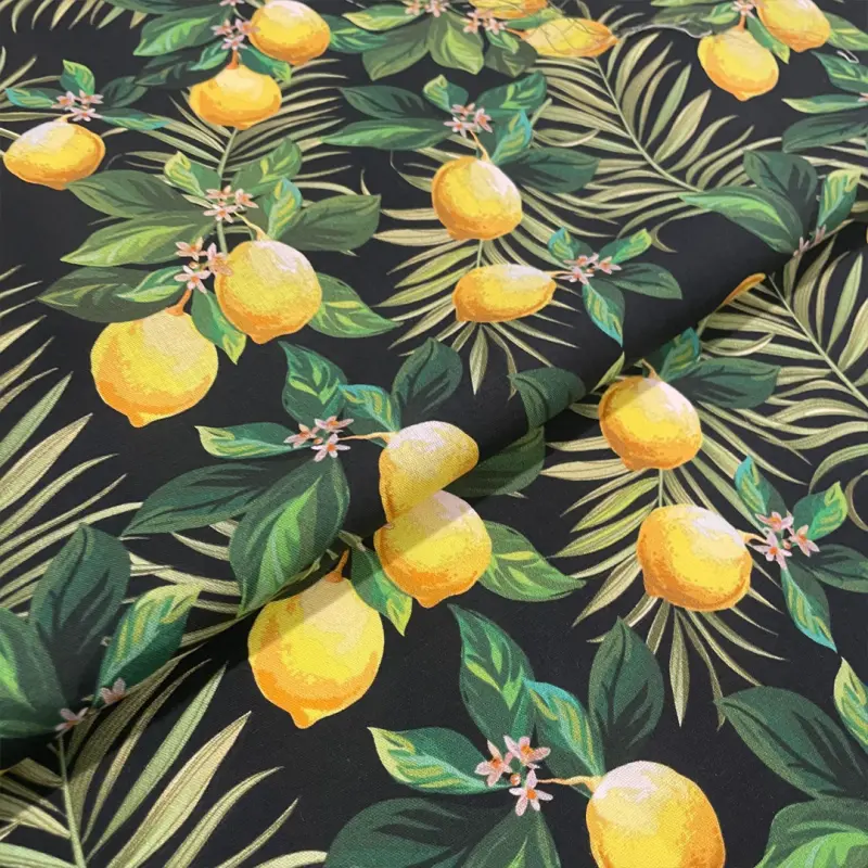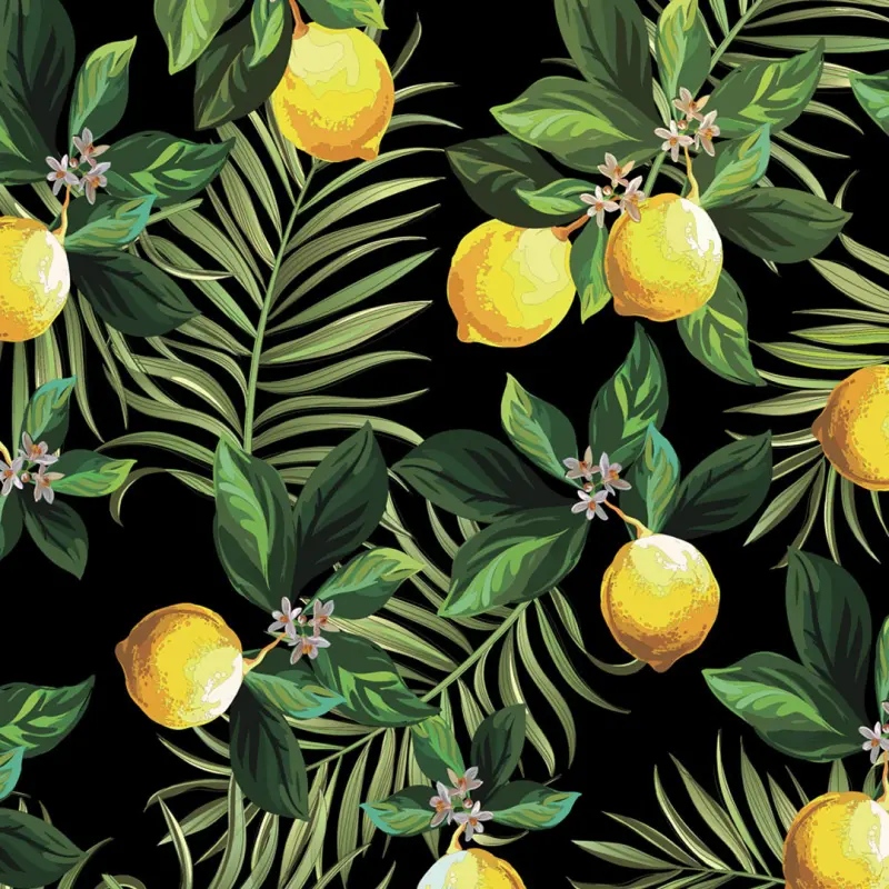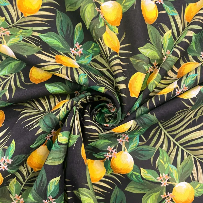 Tricoline Digital Limão Siciliano Fundo Preto 100% Algodão - Variante 1