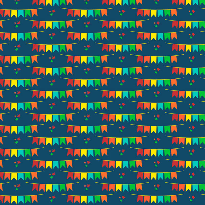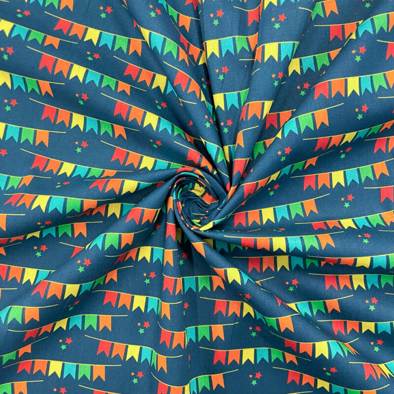 Tricoline Estampada Bandeirinhas Fundo Azul Marinho 100% Algodão 1,50M Largura - Variante 1